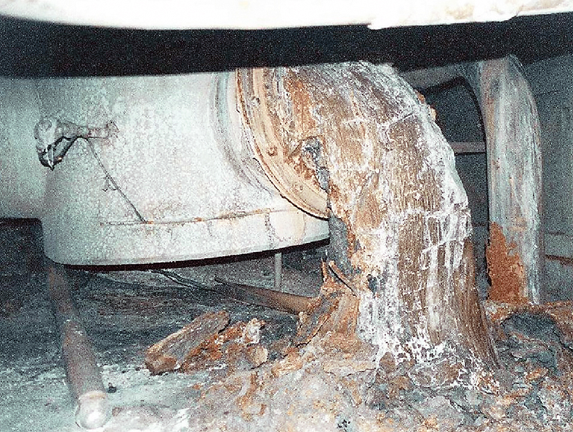 Checherovin tiimi alkoi kartoittamaan reaktorin alla olevia kerroksia, mikä oli hyvin hankalaa, sillä ne olivat aluksi niin radioaktiivisia, että niihin meneminen oli mahdotonta. Pian fyysikoille oli selvää, että reaktorin ydin oli sulanut, valunut pois reaktorista ja levinnyt käytäviä pitkin ympäri rakennuksen alimpia kerroksia, jonne se oli jähmettynyt uudelleen. Tämä oli sinänsä lohduttava tieto, sillä alun perin pelkona oli, että ydin sulaisi ja valuisi reaktorirakennuksen perustusten läpi pohjaveteen asti, ja aiheuttaisi mahdollisesti höyry-räjähdyksiä levittäen kontaminaatiota. Myöhemmin laavavirrat kartoitettiin kolmeksi isoksi pää-muodostumaksi, jotka saivat lempinimet: 1. elefantin jalka, 2. kasa ja 3. Kiina-syndrooma.